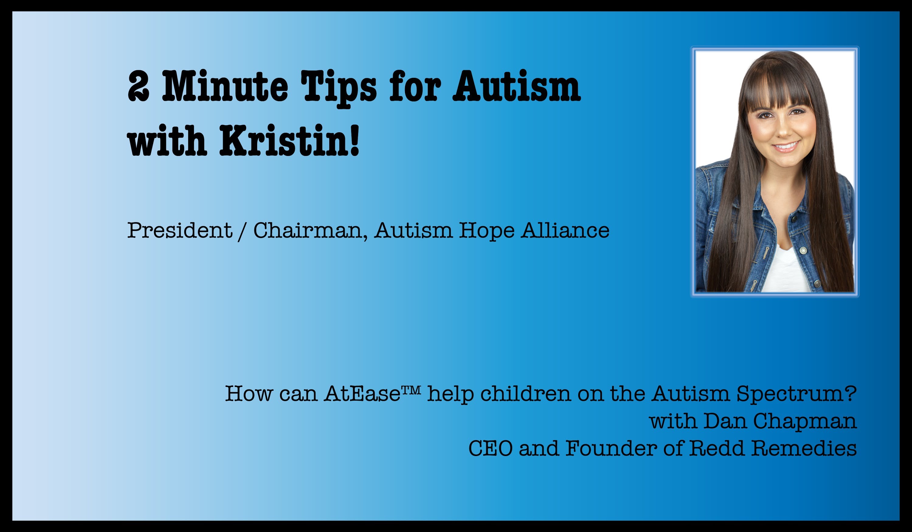 Kristin speaks to Dan Chapman, Founder and CEO of Redd Treatments about how AtEase™ would benefit young children on the Autism Spectrum. Home Home